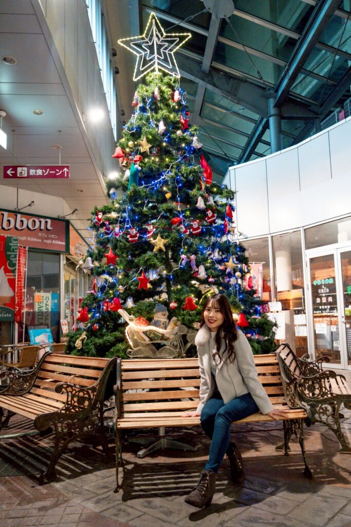 駅前通りにはところどころイルミネーションがあり、商業施設の中にはクリスマスツリーも設置されていました。